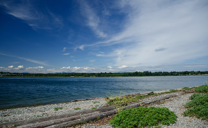 The Ultimate Pacific Northwest Experience. Birch Bay is a sleepy, quietly beautiful Pacific Northwestern hamlet located on the Strait of Georgia, about five miles south of the Canadian border. This lush, green area is part of Puget Sound and has the warmest Pacific waters north of California; making its bays and inlets an ideal environment for thousands of species of plants and animals to thrive. Snowcapped mountains, lush forests, blue lakes and the vast bay provide picturesque landscapes in almost every direction.
