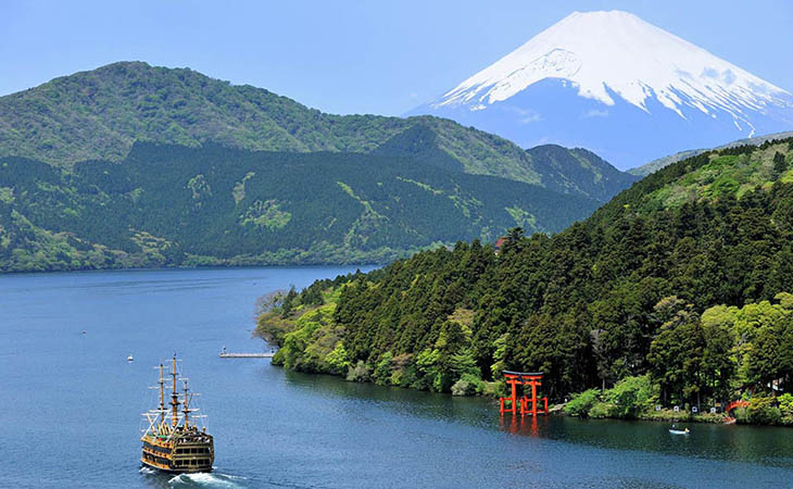 Located high in heavily-forested mountains, the natural beauty of Hakone is enhanced by Mount Fuji – Japan’s snow-crowned icon is visible on the horizon throughout most of the region. Visitors wanting a relaxing Japanese holiday can try the famous Hakone hot springs, or enjoy alpine scenery through the windows of the Hakone Tozan Railway. For something outdoorsy, try hiking through areas like Owakudani (famous for sulphurous fog and geothermal activity), stunning Lake Ashi, and the slightly surreal pampas grass fields.