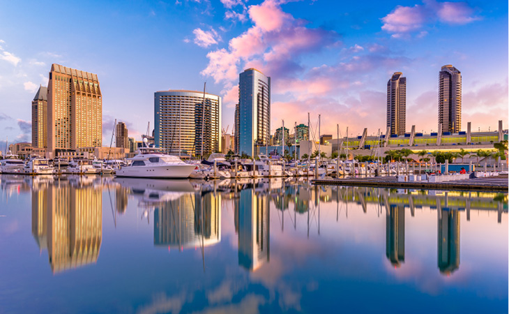 San Diego is situated on the Pacific coast of southern California, approximately 190 kilometres south of Los Angeles and bordering Mexico. The city boasts a natural deep harbor, stunning beaches, canyons, mesas and picturesque mountain ranges. From nature preserves, wildlife attractions and hillside hiking to historic city sight-seeing, museums and theatre, San Diego offers unique experiences for the entire family. If you like variety, San Diego is for you!