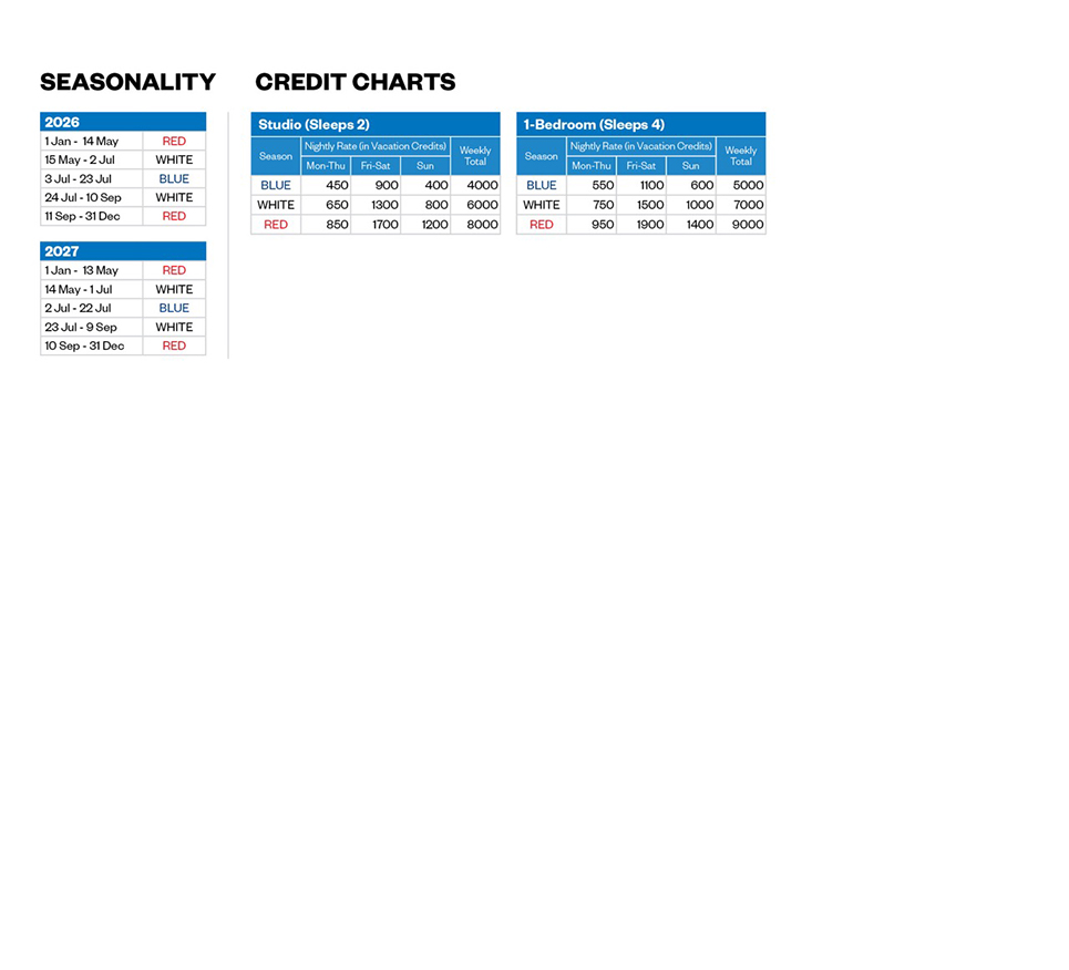 Car Parking: The resort is not able to accommodate RV, trailer, or boat parking. Studio units have parking located outside the units.