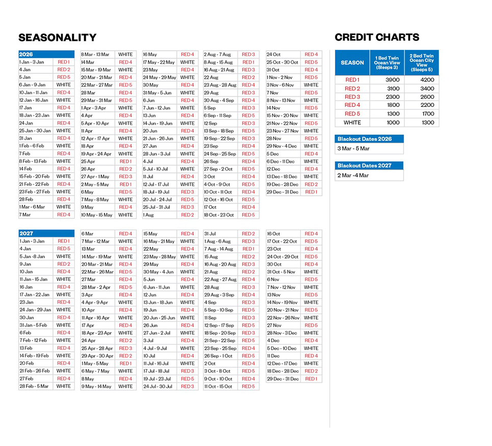 - All other room types not marked with the above symbols are request only. Please fill out this Booking Form and an Owner Services consultant will be in touch with you.