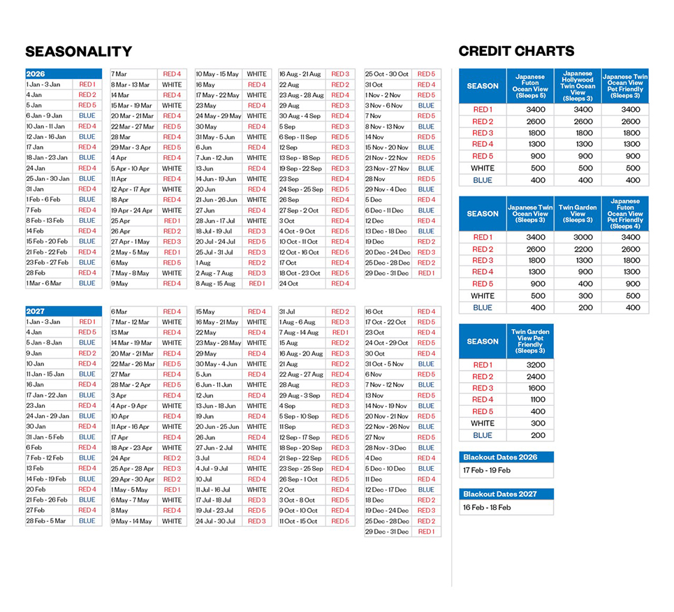 **JAPAN ON REQUEST ROOMS: All confirmed bookings for “Request Only Rooms” will not appear on the online account history. Please contact Owner Services if booking needs to be cancelled or amended.**