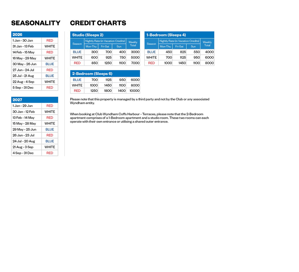 Credit Card Fees: $1.00 for pre-authorisation for owners. If guests cannot provide a credit card for pre-authorisation, $100 cash deposit is required. Credit Card fees: From 1 September 2016 payments made by credit card for any charges incurred during your stay at a Club Wyndham resort will incur a Credit Card Service Fee of 0.9% in addition to the total amount payable.