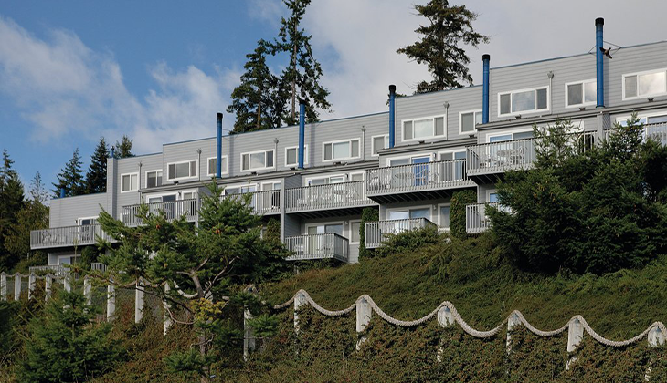 - Three-story townhouse-style units with a minimum of 24 stairs required to access (except special needs units).