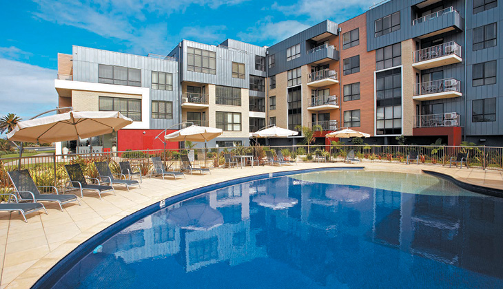 • Club Wyndham apartments overlook neighbouring buildings.
