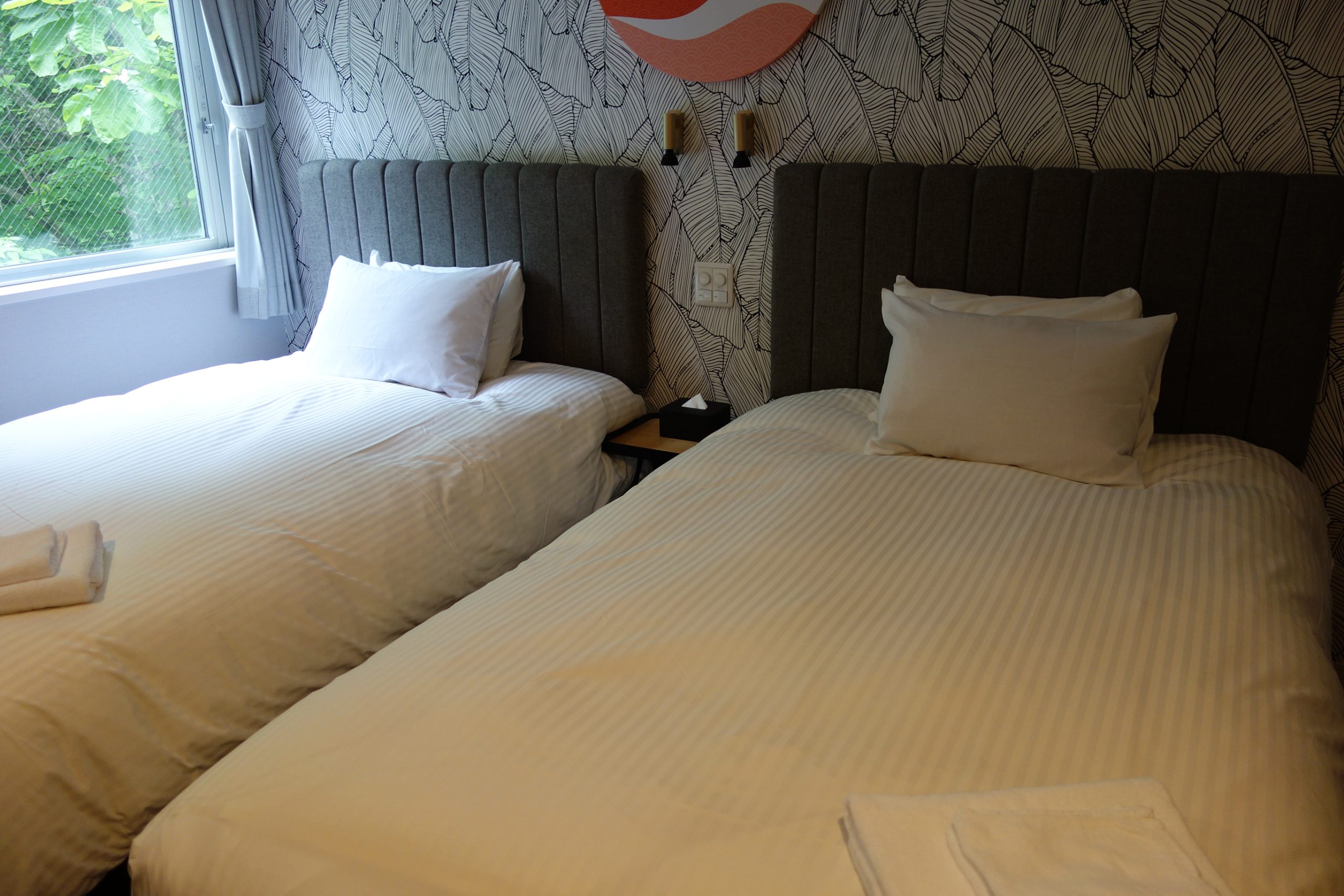 - Bedding: This resort has a mix of Western style twin beds and traditional Japanese futons. Please refer to the room description for details of which bedding your room type has. Traditional Japanese futons are slim, rectangular, cushions. These are thin, usually only measure 3 to 4 inches in height, and a single sleeping width to be used on top of a woven Tatami Mat. They are meant to be rolled up or folded and stored away when not in use.