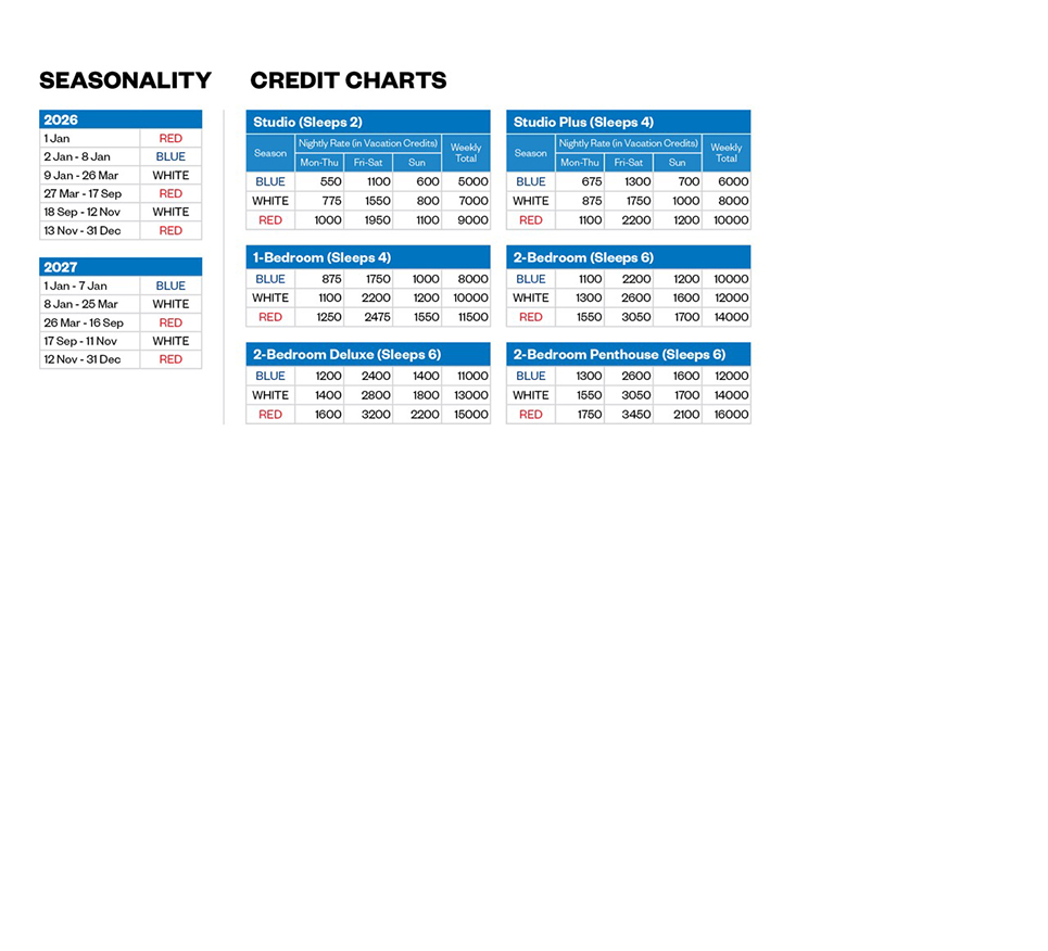 Click here to instantly calculate the credits required for your holiday