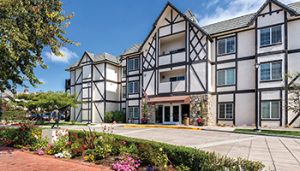 wonderland of windmills, flower baskets and flying pennants, bustling downtown shopping district