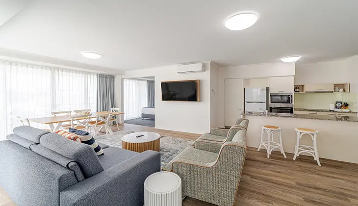 Surfair Beach Hotel, located on-site and independently managed, regularly hosts live entertainment in its Sports Bar, particularly on Friday and Saturday nights. While the venue operates within local noise regulations under the Liquor Act, guests staying in some nearby apartments—particularly one of the two-bedroom units located above the bar—may experience elevated noise levels during these times.
