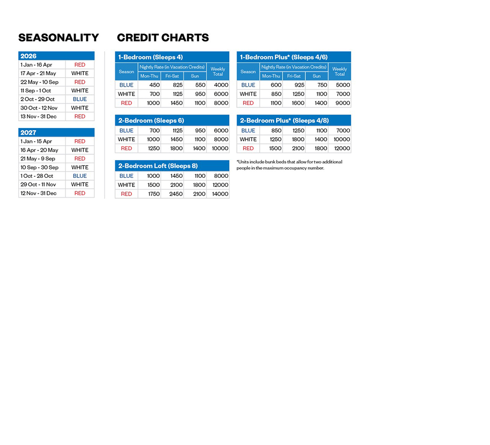 Click here to instantly calculate the credits required for your holiday