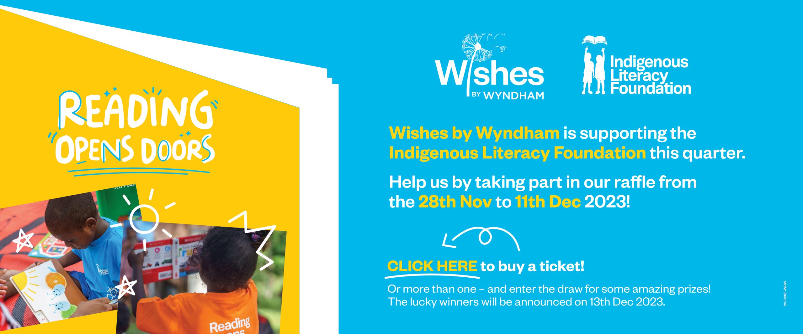 Every quarter, Wishes by Wyndham – our philanthropic arm – commits to raise funds for a worthy children’s charity. We are coordinating a Quarter 4 raffle to raise money for the Indigenous Literacy Foundation, whose purpose is to invest in remote Aboriginal and Torres Strait Islander Communities to provide the tools and resources they need to shape the direction of their children’s literacy futures.